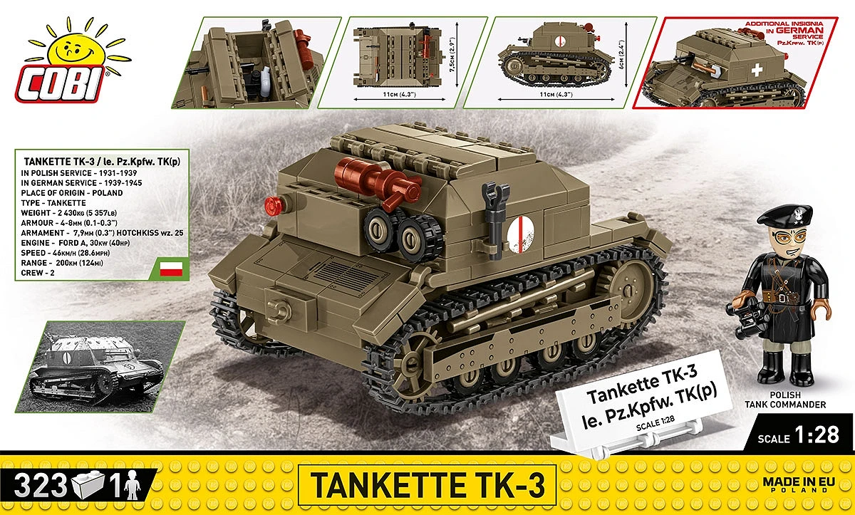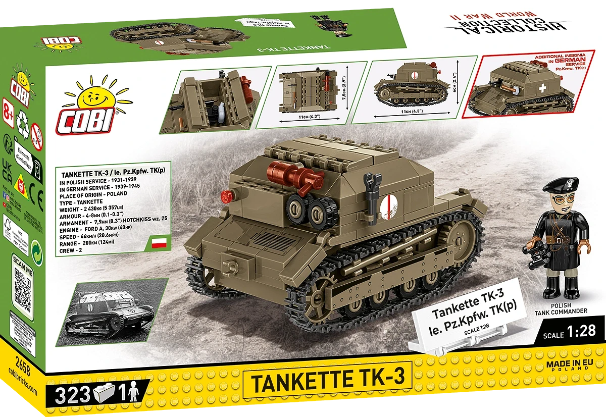 - Historyczna precyzja: Model wiernie odwzorowuje konstrukcję tankietki TK-3. Dzięki szczegółowym detalom i odwzorowaniu oryginalnych elementów możesz stworzyć realistyczne dioramy, które przeniosą cię w czasy II wojny światowej.