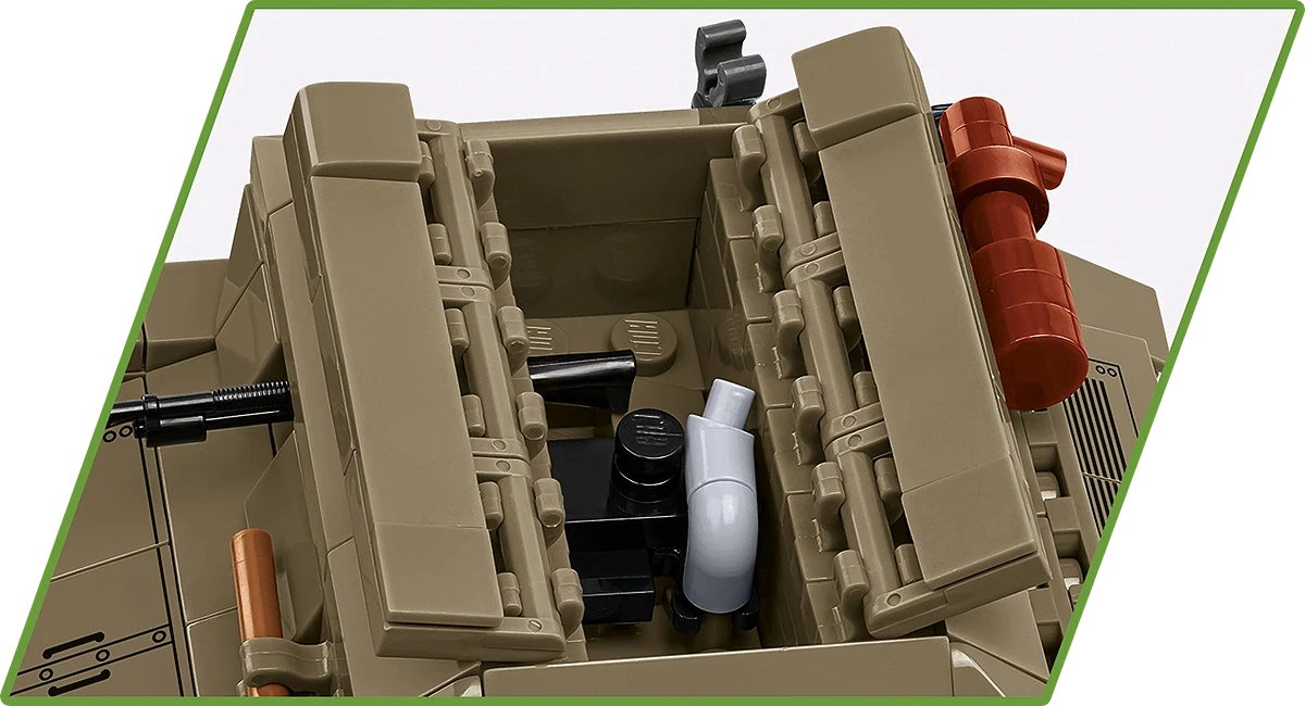 Interaktywność: Otwierane włazy umożliwiają umieszczenie figurki w środku, co daje wyjątkową możliwość personalizacji modelu i zwiększa jego atrakcyjność.- Ruchoma trakcja gąsienicowa: Zintegrowana, ruchoma trakcja gąsienicowa sprawia, że model jest bardziej dynamiczny i pozwala na wspaniałą zabawę.
