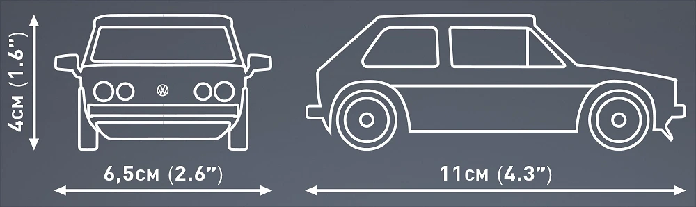 Po złożeniu Volkswagen Golf GTI staje się świetnym elementem dekoracyjnym – można dumnie postawić go na półce w swoim pokoju, obok innych modeli aut od COBI. A jeśli masz ochotę na emocjonujące wyścigi, z łatwością zabierzesz go ze sobą w podróż lub zorganizujesz zawody z przyjaciółmi.