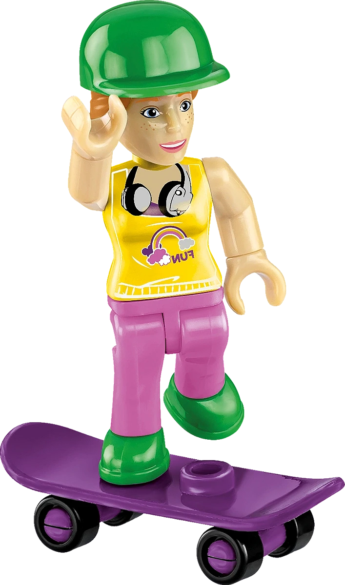 • Akcesoria turystyczne – Turystom nie zabrakło również niezbędnych akcesoriów! Znajdziesz tu min. kuchenkę turystyczną, talerz, patelnie i ryby do smażenia, butelkę z napojem i szklankę, które idealnie pasują do zabawy w obozowanie. Zestaw uzupełniają deskorolki, które stanowią dodatkową atrakcję i powód do dalszego rozwijania historii i zabawy.