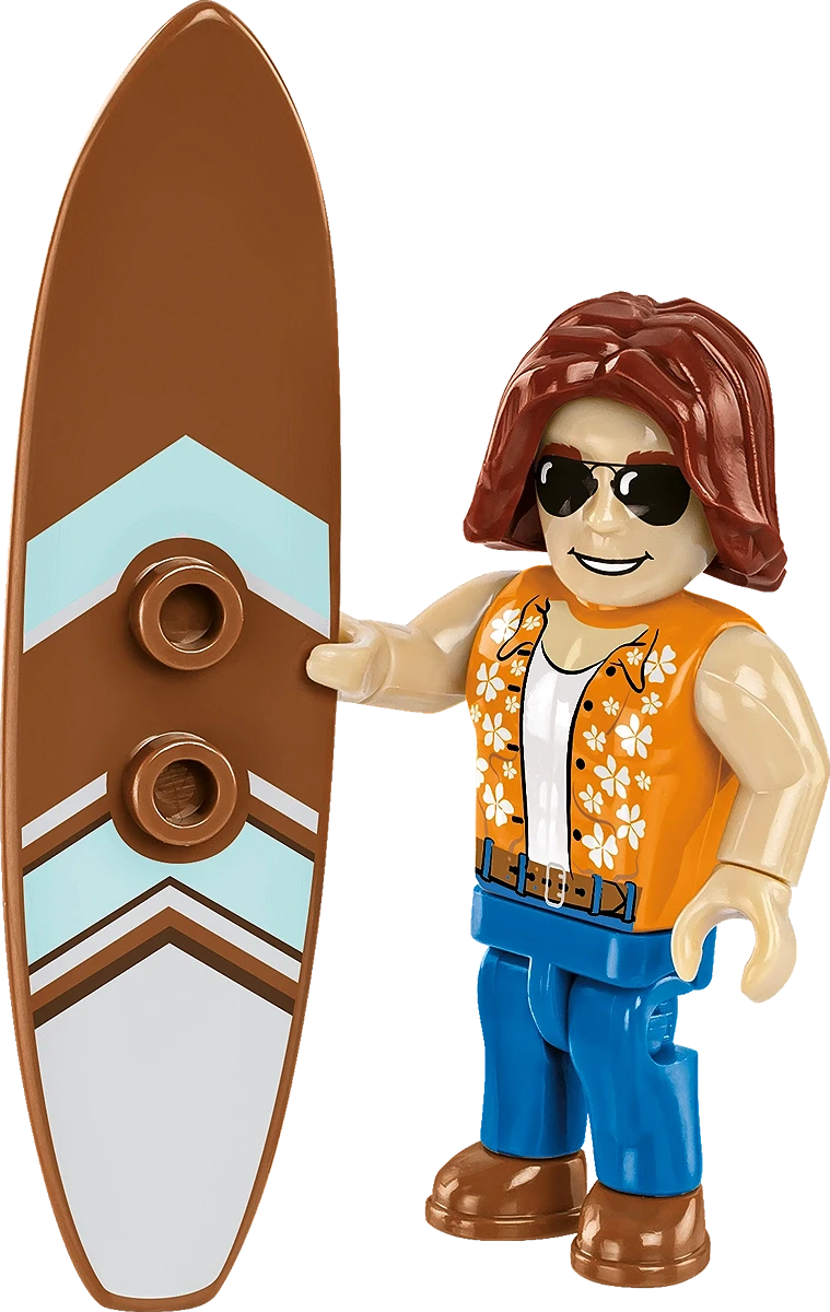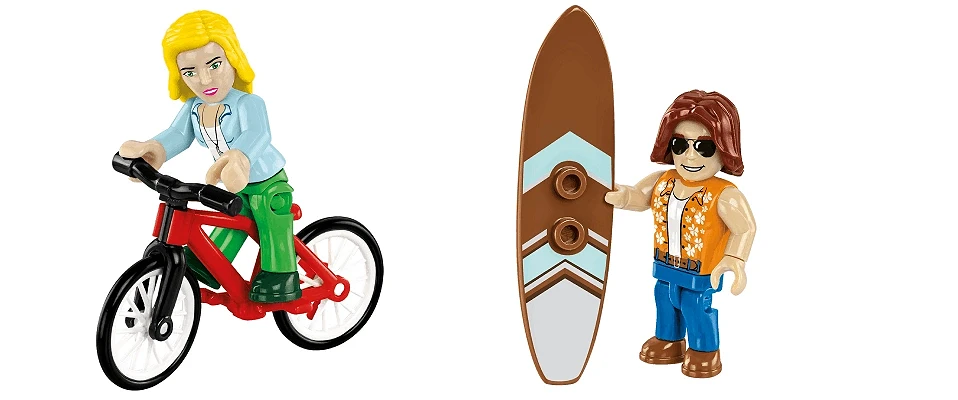 • Dwie figurki – Oto para surferów, gotowych na wakacyjne szaleństwa! Zbuduj ich i przygotuj na łapanie największych fal, a potem umieść ich obok samochodu, by cieszyli się pięknym dniem na plaży.