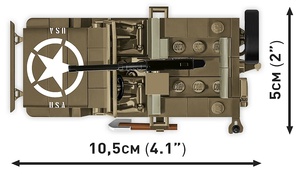 Zestaw zawiera elementy, takie jak obracające się gumowe koła i karabin maszynowy, które podkreślają funkcjonalność i dbałość o szczegóły, co czyni model bardziej autentycznym i realistycznym.