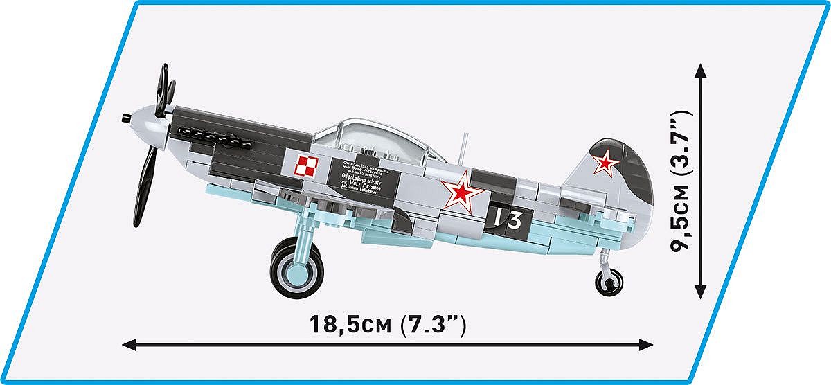 Ze 142 klocków konstrukcyjnych COBI wybudujesz historyczny samolot myśliwski, który służył w Ludowym Wojsku Polskim. Klockowy model zawiera wysokiej jakości nadruki oraz odpinane podwozie. Na szczególną uwagę zasługuje klocek z napisem fundacyjnym Wolfa Messinga, który podarował samolot polskim lotnikom. Samolot ma 18,5 cm długości oraz 22 cm rozpiętości skrzydeł i idealnie pasuje do naszej rosnącej kolekcji historycznej! YAK-1b to łatwy w budowie model, idealny na dobry początek przygody z klockami konstrukcyjnymi COBI. Jest to samolot, na który szczególną uwagę powinni zwrócić pasjonaci lotnictwa, techniki wojskowej oraz historii.